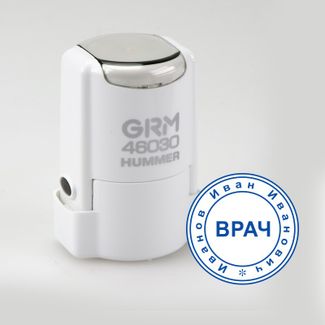 Печать врача, д.30 мм, на автоматической оснастке GRM 46030 Hummer, корпус белый глянец