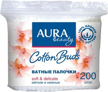 - Aura Beauty Cotton Buds 200 палочек в пачке по выгодной цене 66 р. руб.;