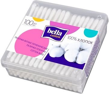 - Bella Cotton 100 палочек в квадратном контейнере по выгодной цене 34 р. руб.;