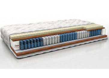 Состав матраса по слоям: Съемный чехол из трикотажа Алоэ Вера Натуральный латекс 30мм Латексированная кокосовая койра 10мм Независимые пружины TFK 130мм Латексированная кокосовая койра 30мм Съемный чехол из трикотажа Алоэ Вера None Есть доставка.