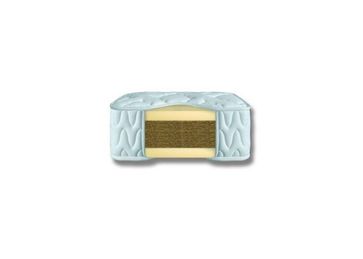 Жесткий матрас на оcнове искусственного латекса и кокосовой койры.Искусственный латекс - 3 см. с обеих сторон.Кокосовая койра - 9 см.Чехол: ткань Комфорт-Стрейч или Велюр-Антистресс на выбор. Простеган на холлофайбере.Высота матраса: 19 см. None