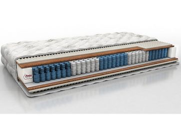 Состав матраса по слоям: Cъемный чехол из трикотажа Алоэ Вера Ячеистовый латекс 30мм Латексированная кокосовая койра 10мм Независимые пружины TFK 130мм Латексированная кокосовая койра 10мм Съемный чехол трикотажа Алоэ Вера None Есть доставка.