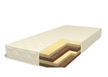 Беспружинный ортопедический матрас. Универсальная комфортная модель матраса с различной жесткостью сторон: средней и жесткой. Наполнителями матраса служат чередующиеся между собой трехсантиметровые слои кокосовой койры и натурального латекса. Сочетание жесткой кокосовой койры и мягкого натурального латекса придает комфортную упругость жесткому матрасу. Кокос и латекс — прочные, натуральные, экологически чистые материалы, не вызывающие аллергии, не поддающиеся гниению и деформации даже в условиях повышенной влажности. Могут многократно восстанавливать первоначальную форму в течение длительного срока службы. Чехол матраса изготовлен из хлопкового жаккарда, простеганного с наполнителем. Высота 13 см.