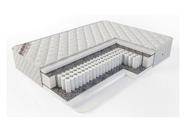 Матрас Сонет от фабрики Виртуоз - это ортопедический матрас на основе блока независимых пружин. Блок независимых пружин позволяет позвоночнику лежащего на матрасе человека принять самое правильное и естественное положение. Наполнителями этой модели матраса с двух сторон служат термоупрочненный войлок и струтофайбер. Струтофайбер — современный полимерный экологически безопасный материал с добавлением натуральных хлопковых волокон. Волокна в материале расположены вертикально, чем достигается дополнительный пружинящий эффект. Струтофайбер не подвержен остаточным деформациям, не накапливает статического электричества, имеет длительный срок службы. Чехол матраса изготовлен из хлопковой жаккардовой ткани и простеган с трехсантиметровым хлопковым наполнителем, что делает более нарядным внешний вид и обеспечивает дополнительный комфорт. Матрас изготовлен из экологически чистых материалов. Выпускается с блоком пружин 260 шт/кв. м.