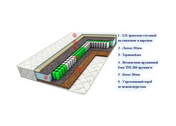 Волокно кокоса является одним из самых жестких и прочных органических волокон, применяемых в производстве матрасов. А латекс, в свою очередь, придаёт отличную упругость и мягкость матрасу. Из всех моделей матрасов на независимом пружинном блоке, - эта модель обладает самыми высокими показателями надежности и долговечности.