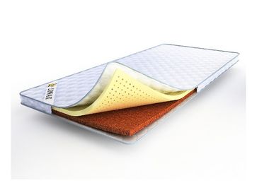 Превосходная модель наматрасника "Latex-Cocos" от фабрики Лонакс обладает отличным ортопедическим эффектом с разной жесткостью сторон, а использование в ней натуральных материалов делает ее еще более привлекательной. В этой модели используются такие материалы как: Латекс - 100% натуральный мягкий материал, изготавливаемый из млечного сока каучуконосных растений и латексированная кокосовая койра - 100% натуральный жесткий материал, изготавливаемый из пролатексированных кокосовых волокон. ГОСТ 14314-94 допускает отклонение размеров готового матраса в пределах ± 2 см от заказанного размера. Все матрасы и наматрасники, производимые фабрикой Лонакс (кроме детской серии), выполняются в чехлах из хлопкового жаккарда (80% хлопка) и отличаются лишь толщиной комфортного слоя - синтепона, на котором простегивается чехол. Чехол "Эконом" простегивается на 100 гр./м2, "Стандарт" - 200 гр./м2 и чехол "Люкс" - 300 гр./м2. Кроме того, в чехле "Люкс" используется двойное плетение нитей, что делает его более "толстым" и износоустойчивым. Наматрасники фабрики Лонакс выполняются в съемном чехле (c молнией чемоданного типа, вшитой по трем сторонам матраса) и без пропитки Аквастоп - наматрасник водопроницаем. Характеристики: