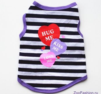 Маечка выполнена из трикотажа в полосочку, на спине аппликация в виде сердечка. Эта модель "Тельняшечки" никогда не будет лишней в гардеробе вашего питомца. Одевается через голову. None