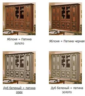 Цвета: Яблоня + Патина золото; Яблоня + Патина черная; Дуб беленый + патина орех; Дуб беленый + патина золото