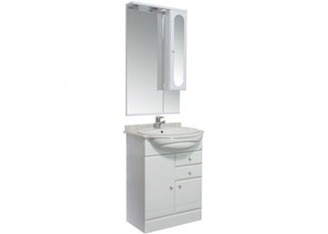 Состав комплекта:-зеркало (со светильником)-раковина (мрамор, фаянс)-тумбаРазмеры тумбы: 600х340х840 ммРазмеры зеркала: 600х150х1100 ммМатериал: МДФ, ДСПЦвет: белый при заказе от 30 тысяч рублей - 100% предоплата. Есть доставка.