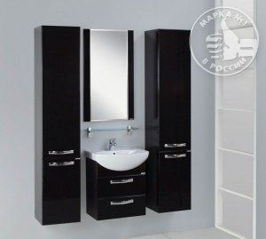 - Комплект мебели Акватон Ария 50 М черный глянец (Тумба раковина и зеркало) в каталоге Мебель для ванных комнат в Москве;