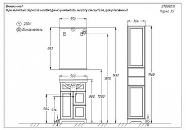 - Комплект мебели Карла 55 Орех-антиквар в каталоге Мебель для ванных комнат в Москве;