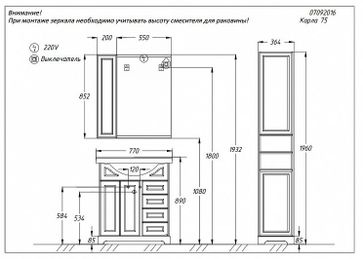 - Комплект мебели Карла 75 Орех-антиквар в каталоге Мебель для ванных комнат в Москве;