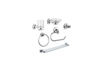 полочка, кольцо для полотенец, держатель зубных щеток, мыльница, держатель туалетной бумаги, крючок None