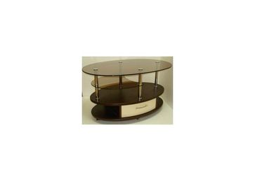 Стеклянный стол журнальный "Варьете - 1" свет d=30, подстолье изготовлено из МДФ (цвет бук или венге), ящик удобен для хранения бытовых мелочей, шаровые опоры позволяют легко передвигать столик. Стойки d=30 хромированные соединяют подстолье с полочкой и столешницей, методом сверловки.Столешница выполнена из светлого или тонированного стекла и повторяет овальную форму подстолья,полочка для книг выполнена из матового стекла.