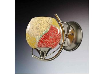 Светильник настенный металлический. Способ крепления: монтажная пластина прикручивается к стене. Подходит для освещения 3-4кв.м. Плафон выполнен в технике "мозаика", возможно использование энергосберегающих лампочек. Хорошо подходит для дополнительного освещения. Схема сборки и подключения в комплекте. Длина 17 см. Высота 18 см. Цвет арматуры Хром Цвет плафона Комбинированый(красный,жёлтый,бежевый) Лампочки 1 шт. 60 Вт 230 В Патрон E14 None