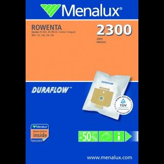 Общее описание Menalux 2300 Сделано в Швеции. Синтетический пылесборник (сменный). Кол-во штук в комплекте: 5 шт. Для пылесосов Rowenta: Dymbo RS005-099, RS 0..., Compact, 1300W, Revo ZR-745