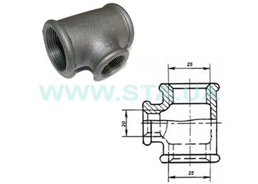 Чугунный тройник 25x20x25мм ВВВ ГОСТ 8948-75 с внутренней резьбой - деталь трубопровода, которая используются для соединения трубопроводов разного диаметра, при чём труба 20мм примыкает под углом 90 градусов.