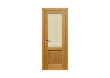Дверь рамочно-щитовой конструкции. Каркас и все детали выполнены из массива сосны. Поверхность полотна покрыта ламелью сосны 4 мм. Толщина полотна 40 мм. Цвет: орех 5 % Ширина полотна: 400, 600, 700, 800, 900 мм Стекло: мателюкс с алмазной гравировкой Высота полотна: 2000 мм. Коробка: и None