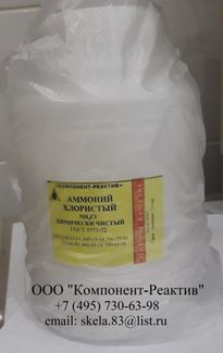 - Хлорид аммония (аммоний хлористый) (NН4Cl ) химически чистый ГОСТ 3773-72 по выгодной цене 1 300 р. руб.;