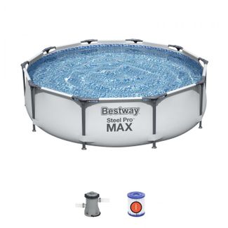 BestWay 305*76 см 56408 BW Каркасный бассейн Bestway 56408 отличается высокой прочностью и устойчивостью. Чаша выполнена из высококачественного трехслойного ПВХ: два слоя плотного винила и один - полиэстер для особой прочности. Каркас металлический нержавеющий оцинкованный.