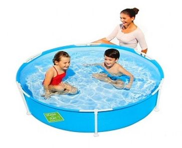 BestWay My First Frame 152*38см 56283 Детский каркасный бассейн «Мой первый каркасный бассейн» отличается высокой прочностью и устойчивостью. Чаша выполнена из высококачественного трехслойного ПВХ: два слоя плотного винила и один - полиэстер для особой прочности. Каркас металлический нержавеющий оцинкованный.