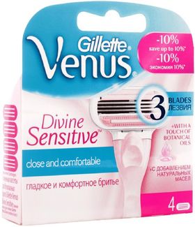 - Venus Divine Sensitive c Натуральными Маслами 4 сменные кассеты в блистере по выгодной цене 999 р. руб.;