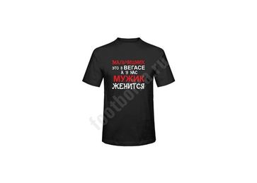 Мальчишник - это в Вегасе, а у нас МУЖИК женится. Модель футболки на фото: Футболка мужская (классическая). Материал: джерси, хлопок 100%. Футболка без боковых швов. Плотность 150гр. Размеры S(46)-M(48)-L(50)-XL(52)-XXL(54)-XXXL(56)+50,0руб. Способ нанесения: термоаппликация (флекс). Стирать в стиральной машине при t до 40С. Перед стиркой вывернуть наизнанку. По изображению не гладить! None Есть доставка.