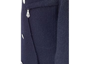 Пальто 100% шерсть (двубортное с металлической фурнитурой).Варёная шерсть лоден.Лоденэту ткань получают из грубой шерсти или, для лучшего качества, из мохера; а обработка вытягиванием делает его практически непромокаемым. С обратной стороны он, как правило, свалянный. Ворс должен быть коротким, густым и плотным; если ворс длинный, то это не настоящий лоден. Грубая ткань, поэтому не совсем подходит для носки в помещениях; традиционно лоден носят в Тироле, где он до сих пор используется охотниками и пастухами, которые ценят его водоотталкивающие свойства.