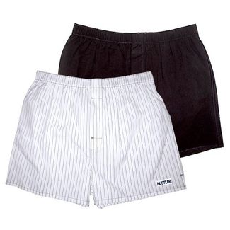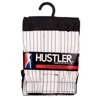 Мужские трусы-шорты из хлопка с добавлением спандекса с логотипом НUSTLER - однотонные черные и белого цвета в тонкую полоску. Трусы на широкой резинке. None
