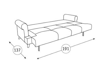 Характеристика: Каркас дивана выполнен из ЛДСП, фанеры, деревянного бруса. Основание матраса: блок плоских пружин «змейка», ППУ, периотек/синтепон 150. Наполнитель подушек: крошка поролона и полиэфирное волокно. Опоры – пластик.