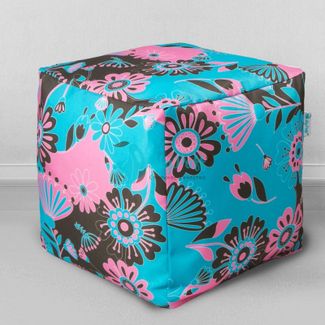 - MyPuff пуфик мешок Кубик Цветы бирюзовые, мебельный хлопок: k_558 в каталоге Мягкая мебель в Москве;