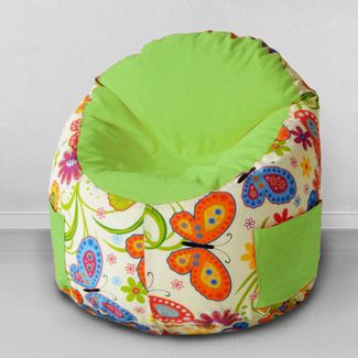 Детское кресло пуф мешок Емеля Бабочки салатовый, для детей до 7 лет. Материал мебельный хлопок. Экологичная ткань. Яркий, мягкий и уютный! None