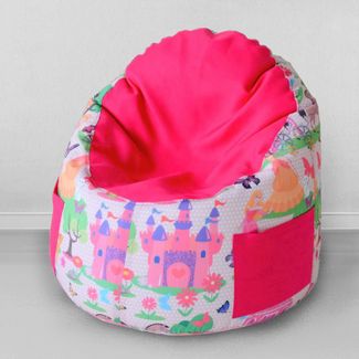 Детское кресло пуф мешок Принцесса малинка, для детей до 7 лет. Материал мебельный хлопок. Экологичная ткань. Яркий, мягкий и уютный! None