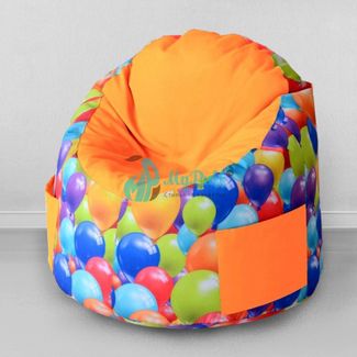 Детское кресло пуф мешок Емеля Воздушные шары оранжевый, для детей до 7 лет. Материал мебельный хлопок. Экологичная ткань. Яркий, мягкий и уютный! None