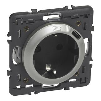 Закажите Celiane. Розетка комбинированная 2К+З 16А ~250В со встроенным зарядным устройством USB C 1.5А 5В. С лицевой панелью и суппортом. Цвет Титан | код 068419 | Legrand у компании ИНКОМОС в Москве на портале Alloy:
