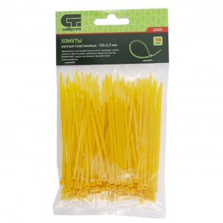 - Хомуты, 100 * 2,5 мм, пластиковые, желтые, 100 шт. Сибртех по выгодной цене 34 р. руб.;