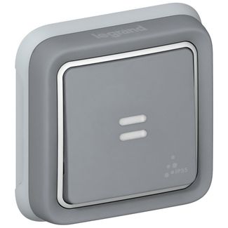 Кнопочный выключатель с подсветкой - Н.О. + Н.З. контакты - Программа Plexo - серый - 10 A | код 069821 | Legrand