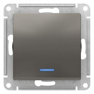 Переключатель 1-клавишный ATLASDESIGN, с подсветкой, скрытый монтаж, сталь | код. ATN000963 | Schneider Electric
