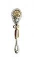 Маленькая и нежная серебряная погремушка выполнена в форме капельки и украшена позолоченным знаком зодиака Дева. None