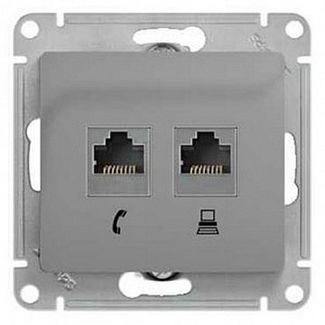 Розетка 2xRJ11+RJ45 Cat.5 GLOSSA, алюминий | код. GSL000385 | Schneider Electric