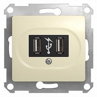 Розетка 2xUSB GLOSSA, бежевый | код. GSL000232 | Schneider Electric