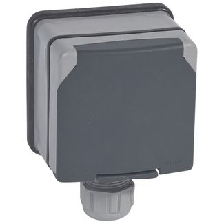 Розетка 3К+3 с защитными шторками - 20 A - 400 В - Программа Plexo - IP 66 - IK 08 - моноблоки - серый | код 090456 | Legrand