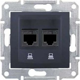 Розетка компьютерная 2xRJ45 Cat.5 SEDNA, графит | код. SDN4400170 | Schneider Electric