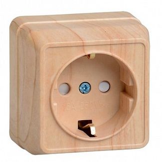Розетка ОКТАВА, открытый монтаж, с заземлением, со шторками, сосна | код. ERO14-K03-16-DC | IEK