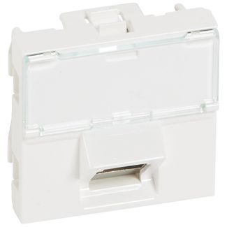 Розетка RJ 45 - Программа Mosaic - категория 6 - STP 45° - 2 модуля - белый | код 076507 | Legrand