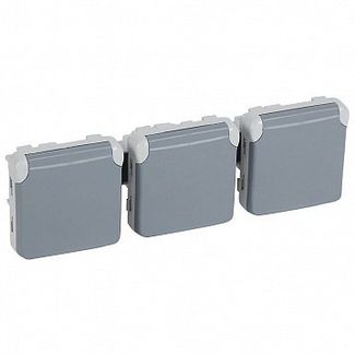 Розетка трехместная PLEXO 55, скрытый монтаж, с заземлением, серый | код. 069578 | Legrand