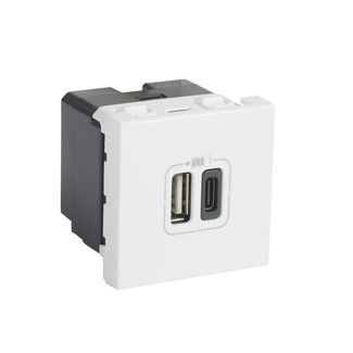 Розетка USB-C+USB-A для зарядки - Программа Mosaic - 2 модуля - белый | код 077592 | Legrand