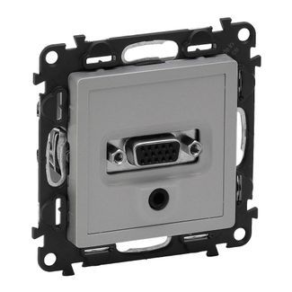 Valena LIFE.Розетка для аудио видео устройств с разьемами HD15 гнездо Jack 3,5мм.С лицевой панелью.Алюминий | код 753370 | Legrand