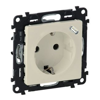 Valena LIFE.Розетка комбинированная 2К+З 16А ~250В со встроенным зарядным устройством USB C 1.5А 5В.С лицевой панелью.Слоновая кость | код 753235 | Legrand