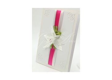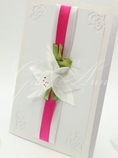 Приглашение на свадьбу Gilliann Orchidea in Crimson NUM010 Свадебные приглашения, украшенные ярко-розовой атласной лентой и изумительным цветком белой орхидеи станут отличным пригласительным на Вашу свадьбу. Такие приглашения выполняют не только практическую функцию, но и служат украшением. Материал: дизайнерский картон, атласные ленты, декоративные элементы, жемчуг. Размеры: любые. Мин. заказ 500 руб.